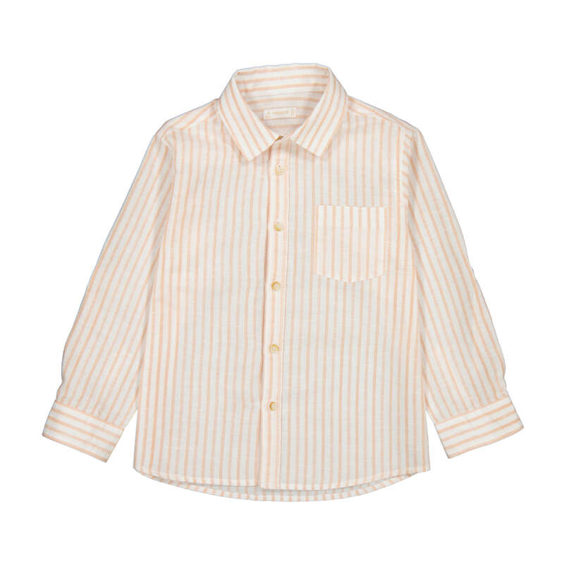 Crafted from a premium cotton-linen blend, this boys' shirt in soft peach stripe delivers exceptional versatility for any occasion. The natural fiber composition ensures breathability and lasting wear, while the timeless striped pattern creates visual interest that photographs exceptionally well. Whether styled casually with shorts or dressed up for special events, this piece becomes an essential foundation for a well-rounded boys' wardrobe.