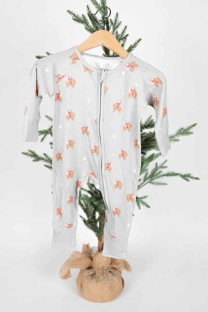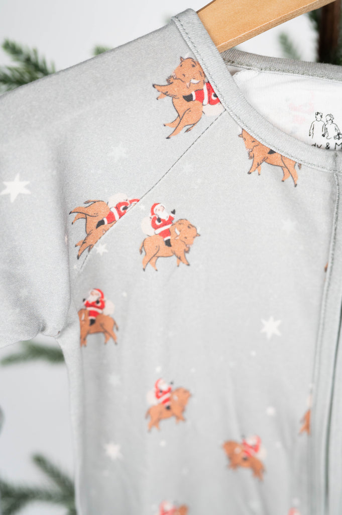 2-Way Zipper Convertible Pajamas -Santa Bison