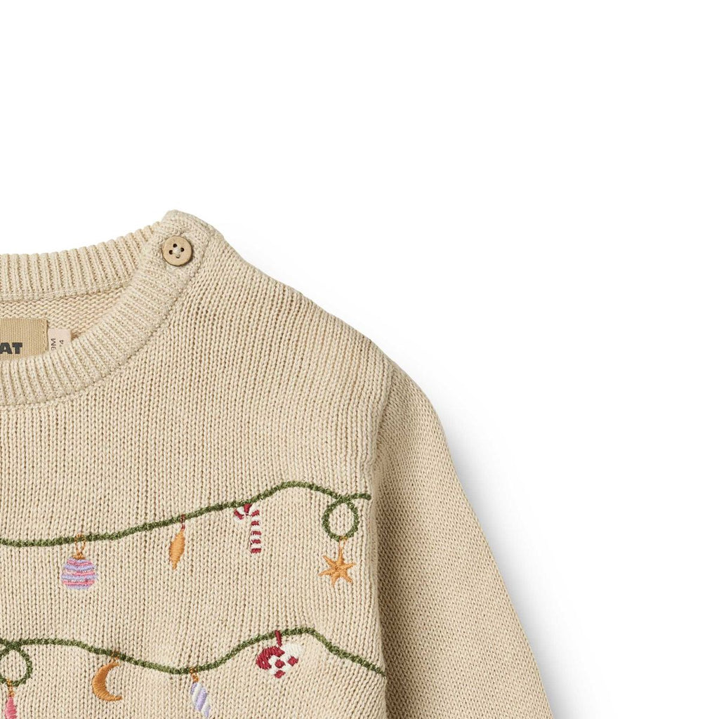 Crafted from 100% organic cotton, this baby girl sweater provides exceptional softness and breathability, perfect for sensitive skin. The cream knit fabric features charming holiday embroidery across the chest, adding a festive touch while maintaining comfort. Ideal for seasonal celebrations, this sweater combines eco-friendly material with expert design for your little one’s cozy holiday wardrobe.