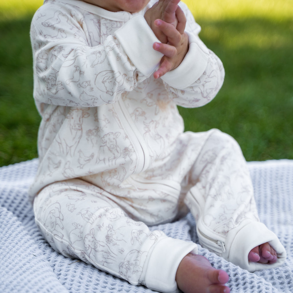 2 Way Zipper Convertible PJ's - Farm Animals