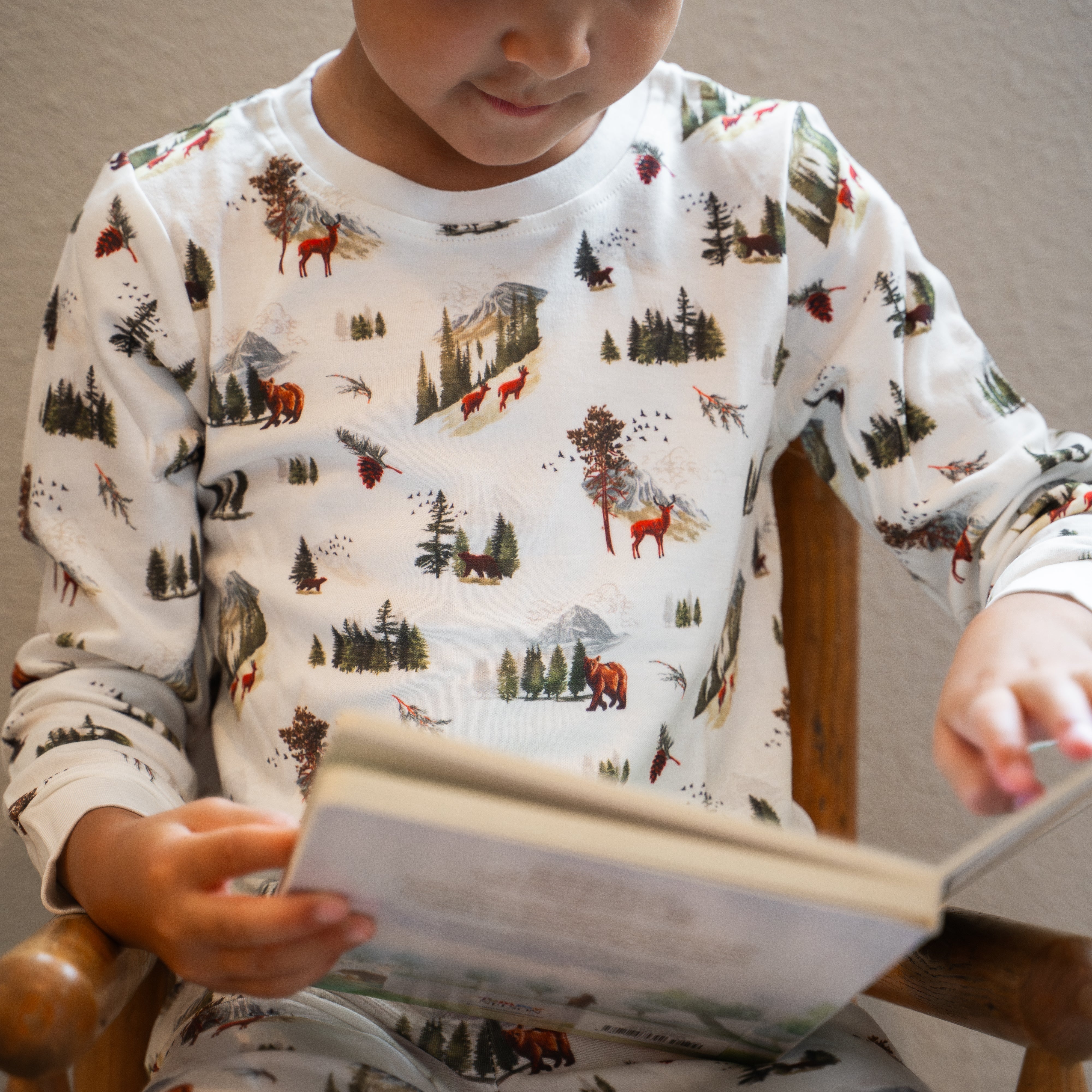 Crafted from a premium blend of 70% bamboo and 30% organic cotton, these 2 Piece Wilderness PJ's offer exceptional softness and breathability. The natural fibers ensure moisture-wicking comfort and durability, making them ideal for restful nights and outdoor-inspired relaxation. Designed with expert attention to fabric quality, these pajamas provide a sustainable and cozy sleepwear option.