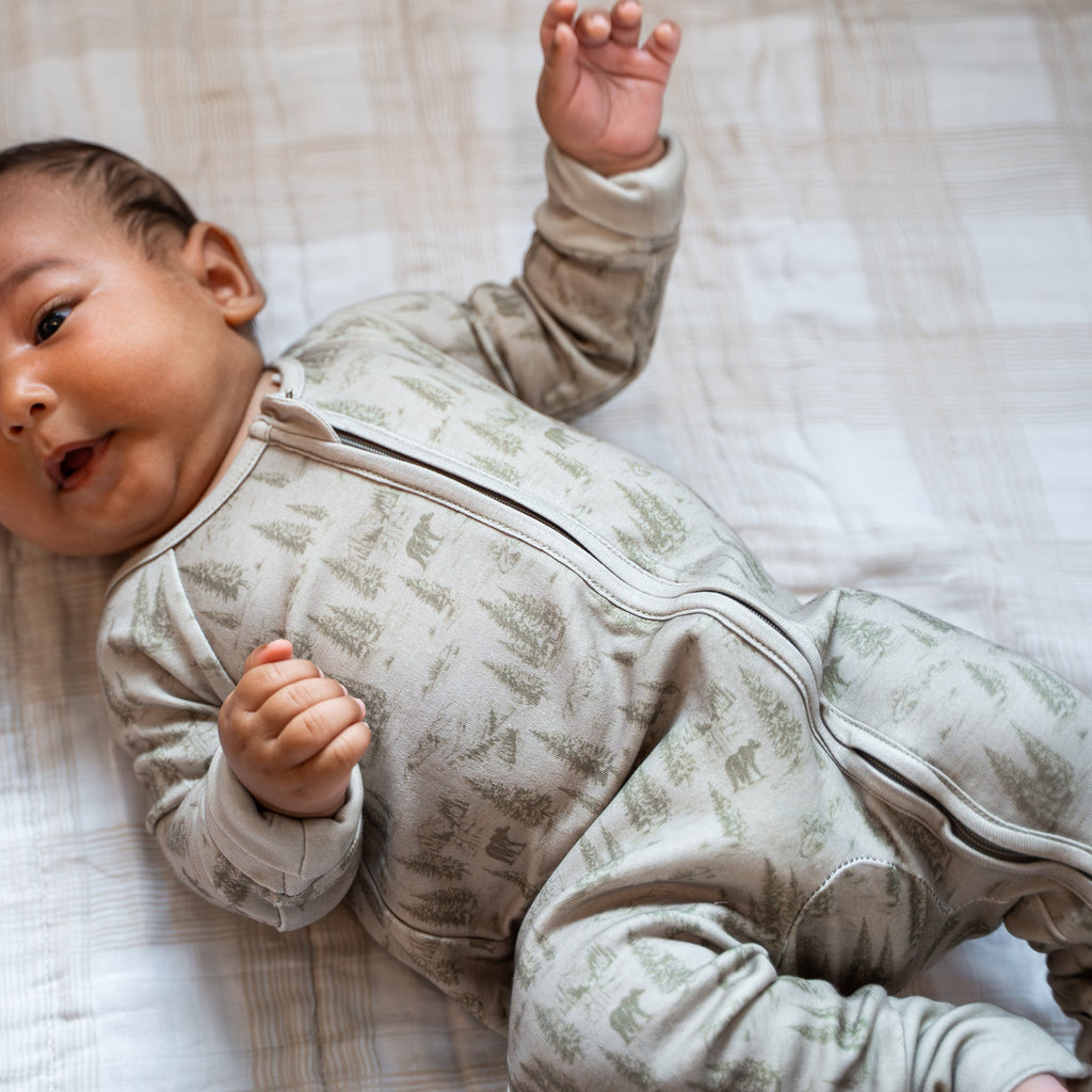 Crafted from a soft blend of 70% bamboo and 30% organic cotton, this 2-Way Zipper Convertible PJ features a unique bear print that combines comfort with style. The innovative two-way zipper design allows for versatile wear and easy changes, making it ideal for both lounging and sleeping.