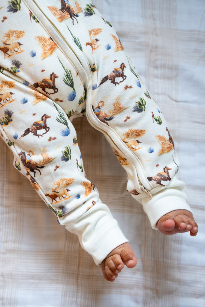 Crafted from a soft blend of 70% bamboo and 30% organic cotton, this 2-Way Zipper Convertible PJ features a unique rodeo print that combines comfort with style. The innovative two-way zipper design allows for versatile wear and easy changes, making it ideal for both lounging and sleeping.