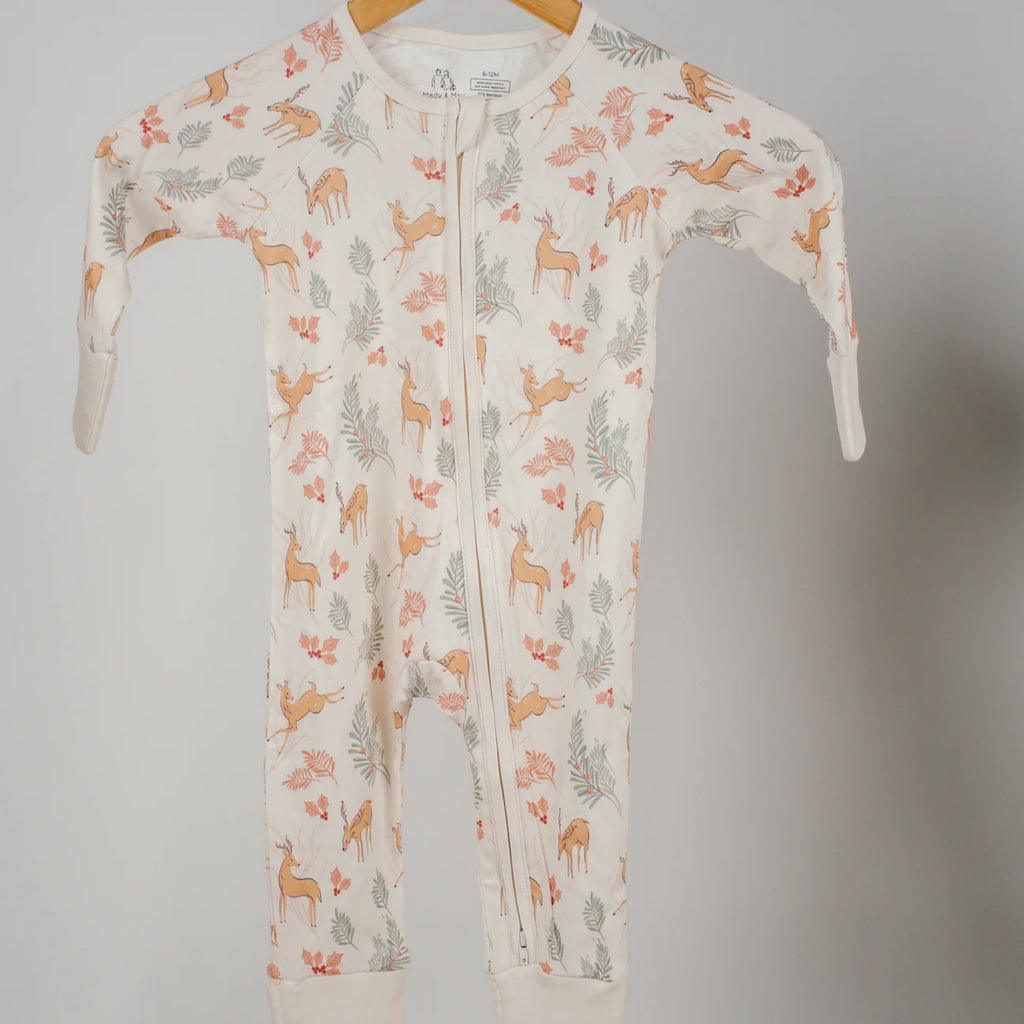 2-Way Zipper Convertible Pajamas- Deer + Holly