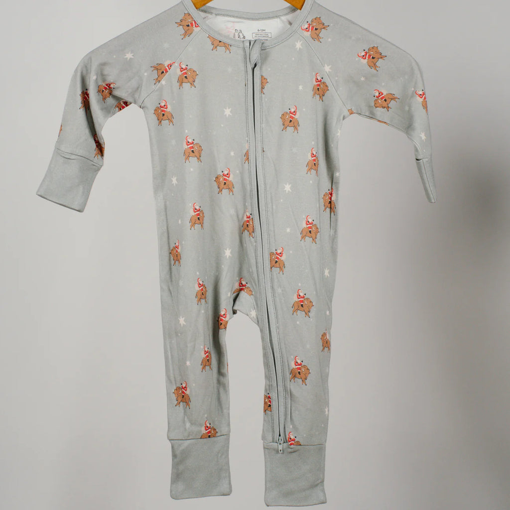 2-Way Zipper Convertible Pajamas -Santa Bison