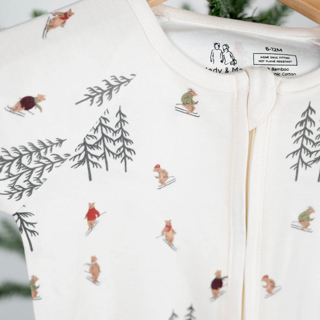 2-Way Zipper Convertible Pajamas- Skiing Bears