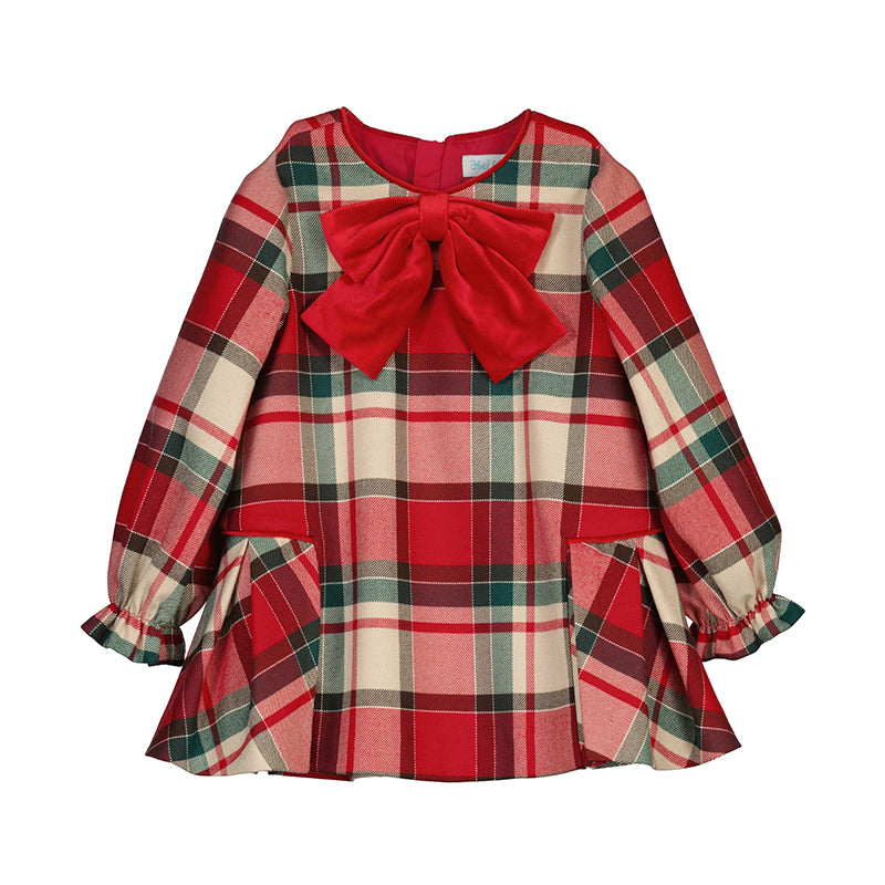 Baby Girl L/S Lace Bella Dress - Ruby Red/Navy Check