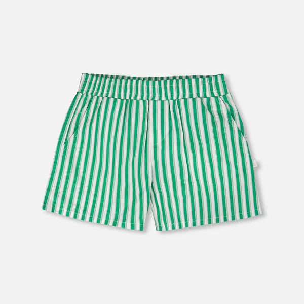 These Striped Shorts in green are a fresh staple for warm weather. Designed with a comfortable elastic waistband and slant pockets, these bottoms balance ease with playful style. Made from breathable cotton, they’re perfect for mixing and matching