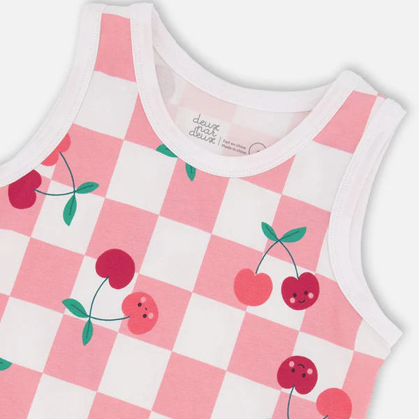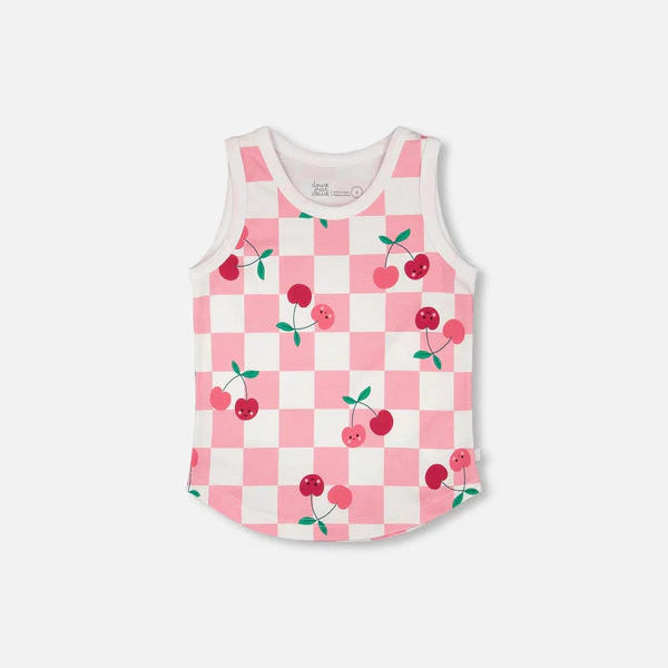 Girls Organic Cotton Jersey Tank Top - Pink Printed Cherries