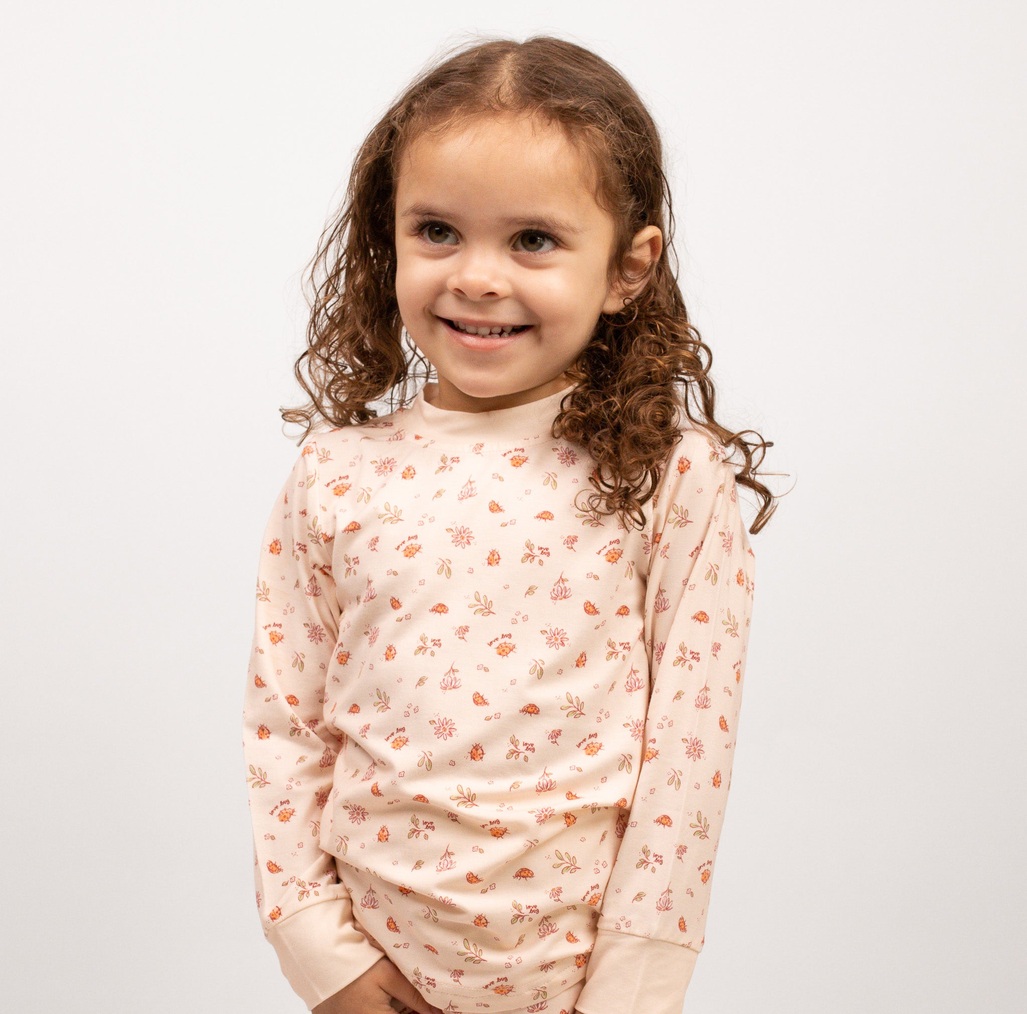 Our bamboo–cotton blend is naturally soft and cozy. To keep your pajamas fitting true to size, wash cold and dry low (or hang dry for best results). High heat can cause slight shrinkage, so treating them gently keeps them looking brand-new wash after wash.