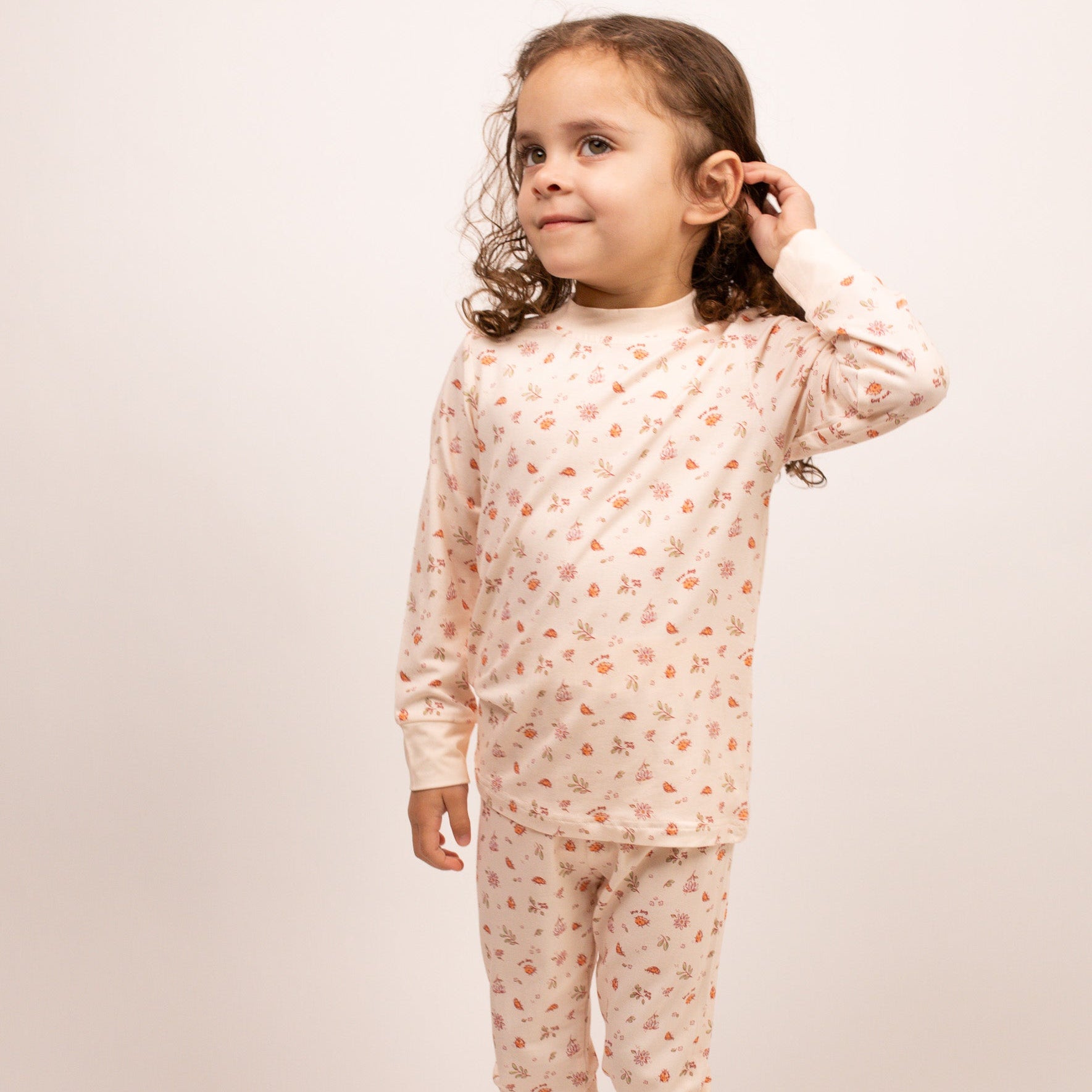Crafted from a premium blend of  95% bamboo and 5% spandex, these Love Bug print PJ's offer exceptional softness and breathability. The natural fibers ensure moisture-wicking comfort and durability, making them ideal for restful nights and outdoor-inspired relaxation.