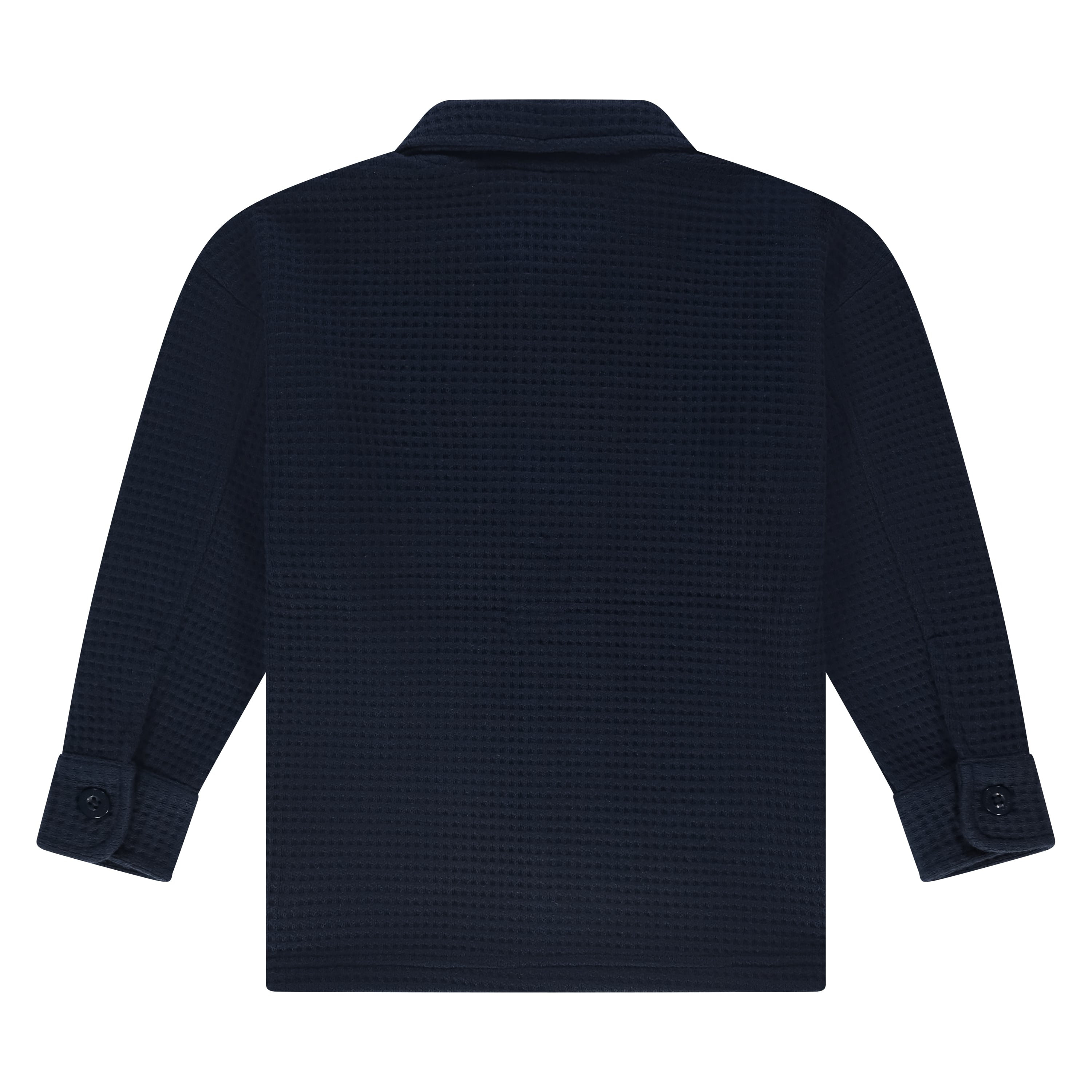 Crafted from soft cotton waffle fabric, this dark blue boys' button-down shirt offers both comfort and style. Its long sleeves and classic design make it versatile for dressy occasions or casual outings, ensuring a polished look without sacrificing ease of wear. Durable and breathable, it's ideal for everyday use while maintaining a refined appearance.