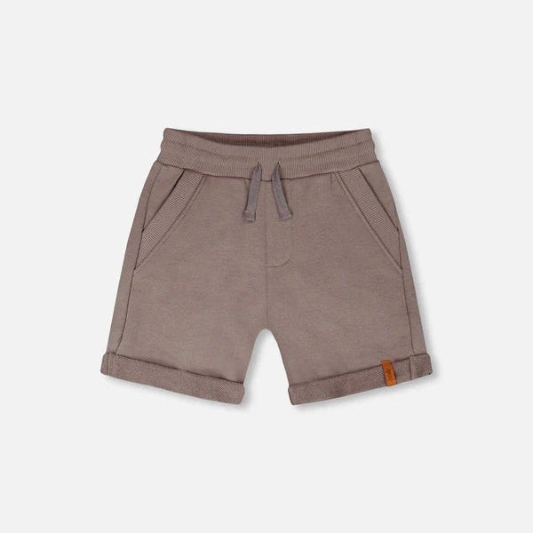 Comfy and versatile, this French terry shorts in taupe are perfect for everyday adventures. These casual bottoms feature an elastic waistband with drawstring, turned-up cuffs, and practical slant pockets on the sides. Crafted from a soft cotton blend in taupe, it brings both style and comfort to warm-weather outfits.