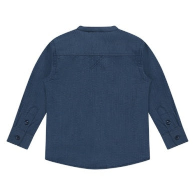 Lightweight boys long-sleeve shirt crafted from a premium blend of 56% cotton and 44% modal. The soft, breathable fabric keeps him comfortable all day, while the mandarin collar adds a polished, modern touch. Perfect for layering or wearing solo, this water-colored shirt transitions seamlessly from casual to dressy occasions.
