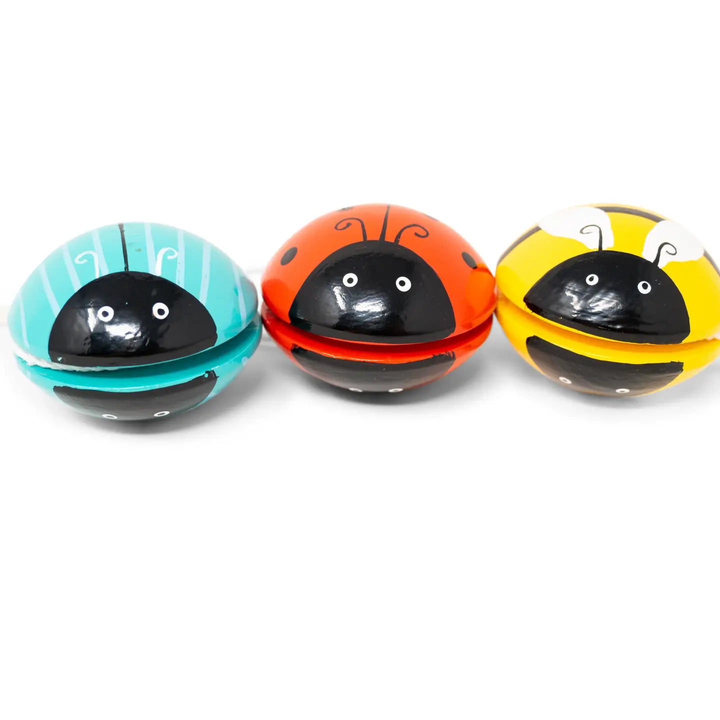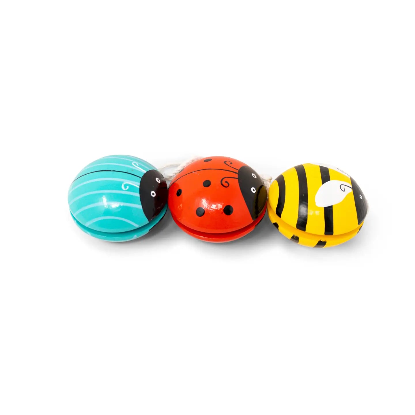 Garden-themed wooden yo-yos in ladybug, bumblebee, and beetle designs
