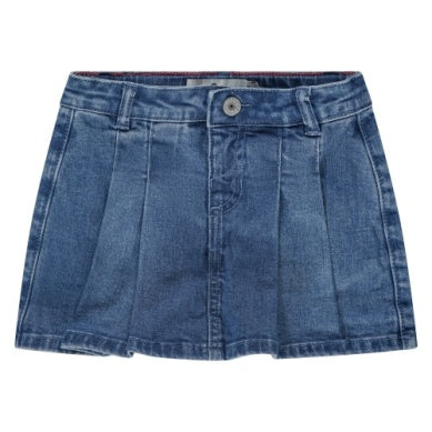 Crafted from a comfortable cotton and elastane blend, this pleated denim skort offers both style and flexibility for active play. The medium blue wash pairs beautifully with denim jackets for a coordinated look. Perfect for layering or wearing solo, this versatile piece transitions seamlessly from casual outings to weekend adventures.