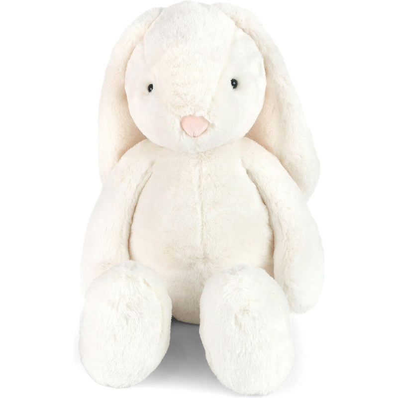 Hippity, hoppity, hooray! Some bunny's excited for Easter. Magnolia Bunny Plush Toy perks up any playroom with her adorable face, floppy ears and talent for cuddling. Featuring a durable design in a sophisticated snow white, this bunny stuffed animal adds an elevated aesthetic wherever she goes. Mon Ami's bunny plush toy doesn't require carrots, just lots of love. Make a child's Easter egg-stra special with our super snuggly bunny stuffed animal.