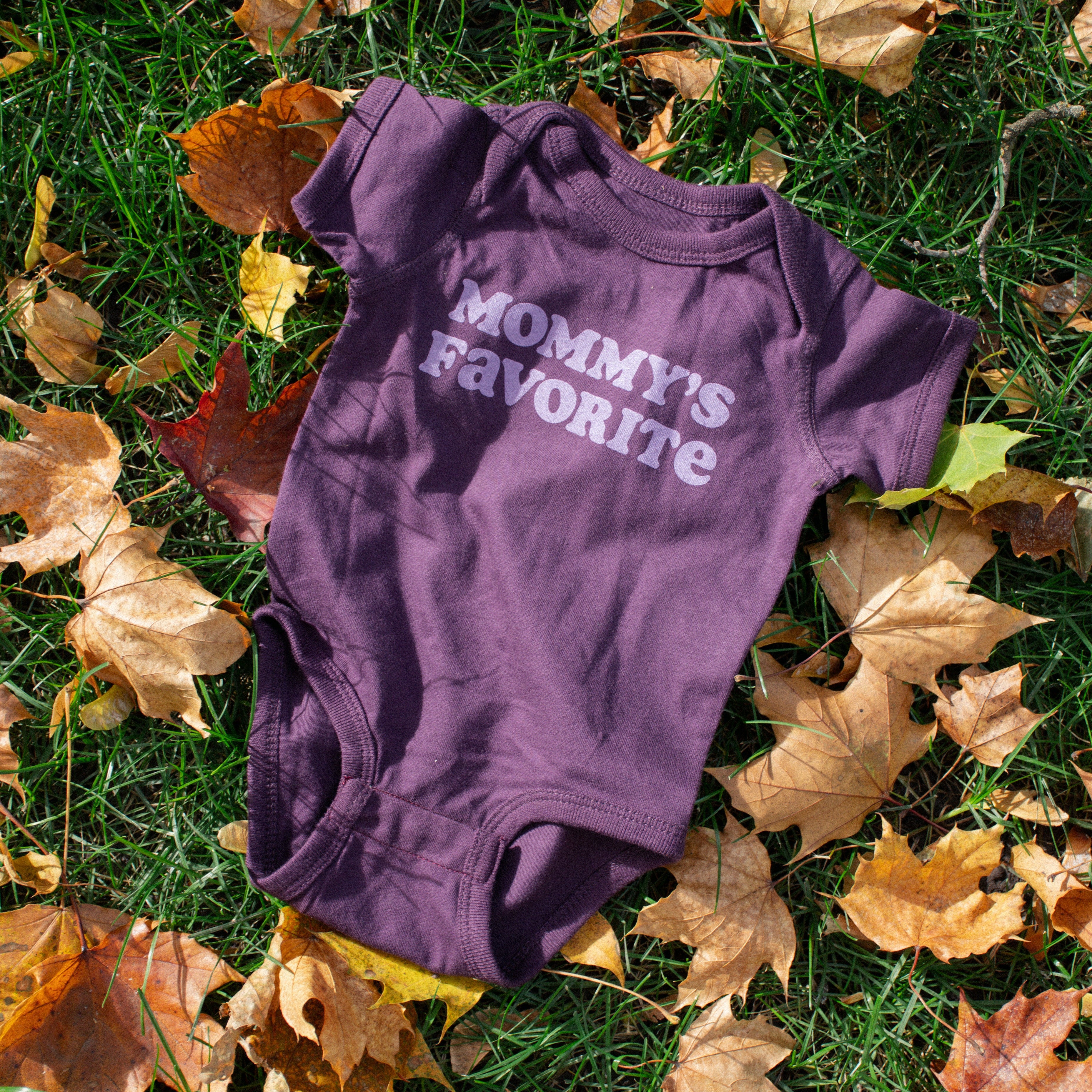 Mommy's Favorite Onesie - Plum - NB is backordered and will ship as soon as it is back in stock.